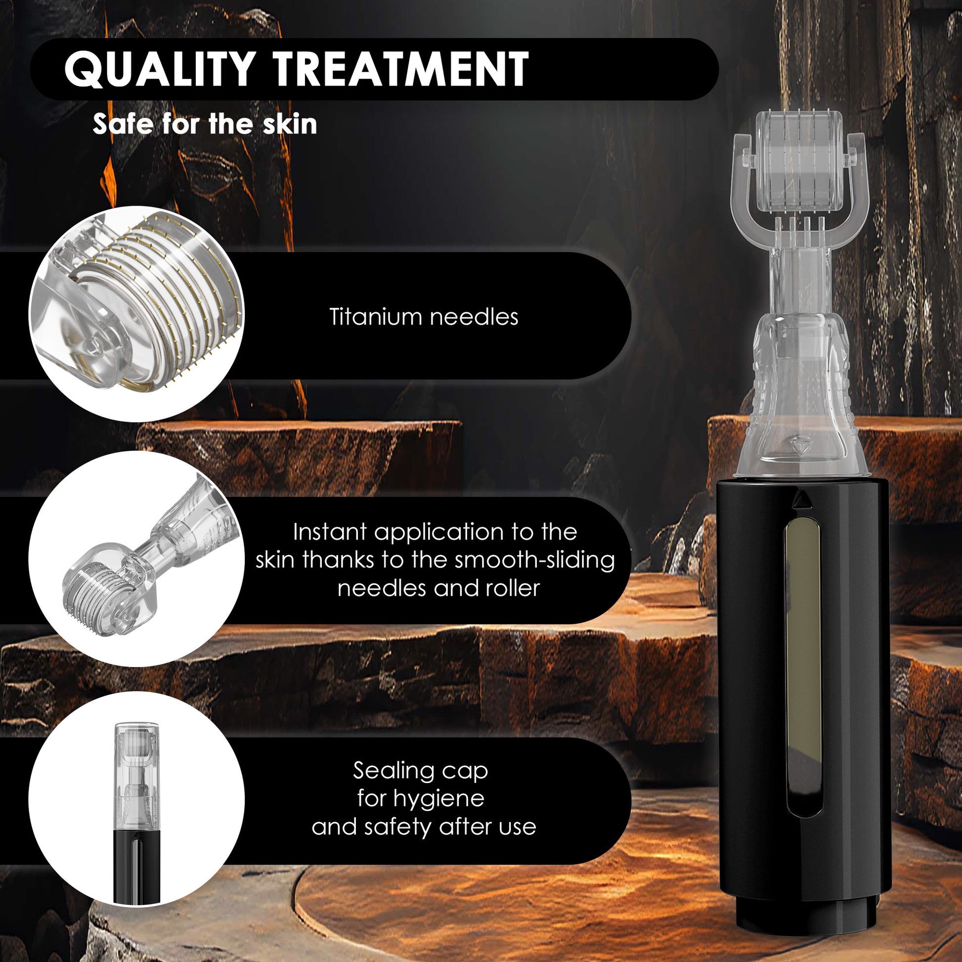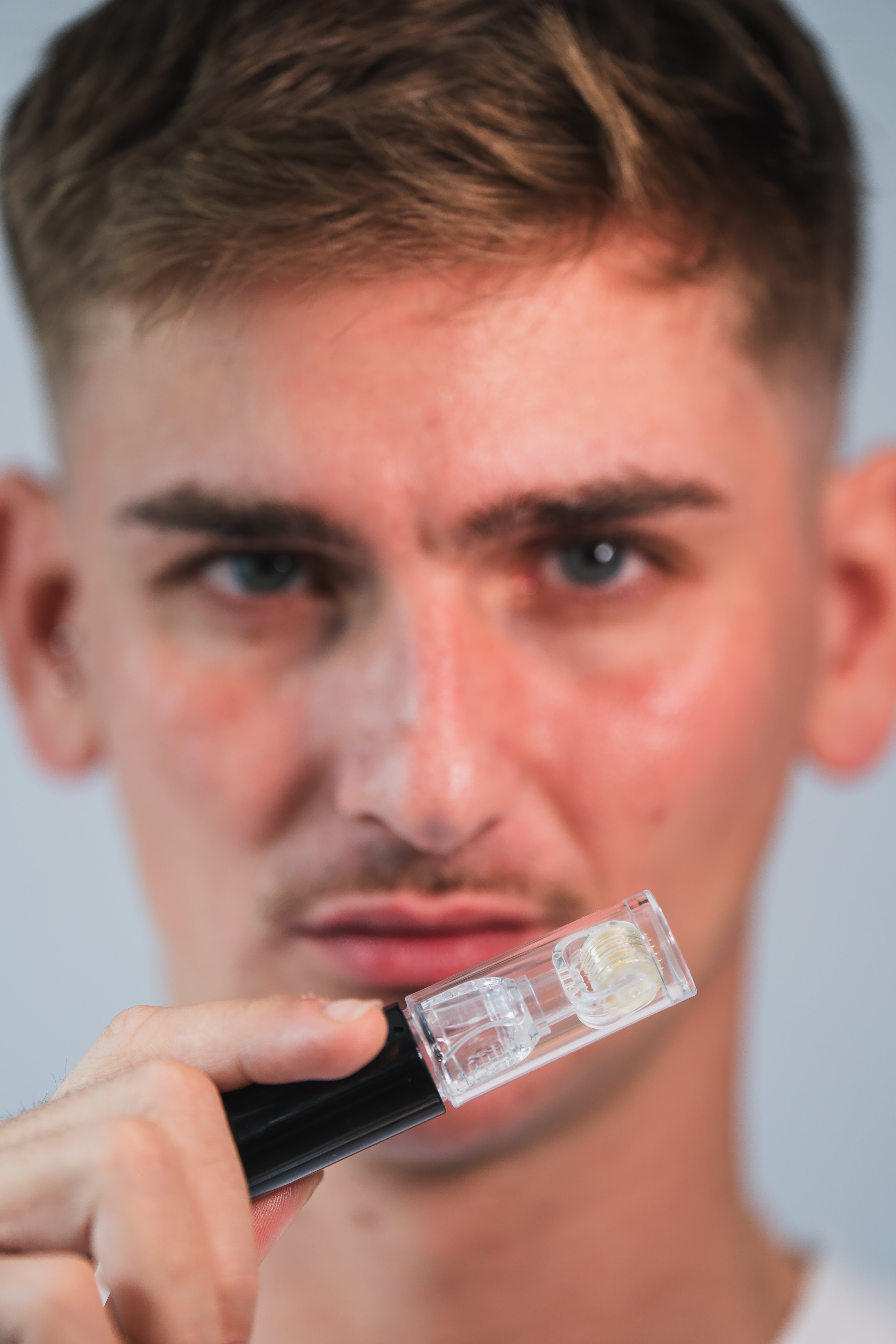 Il nostro derma roller con serbatoio di siero stimola naturalmente la crescita e rafforza efficacemente i capelli e la barba.